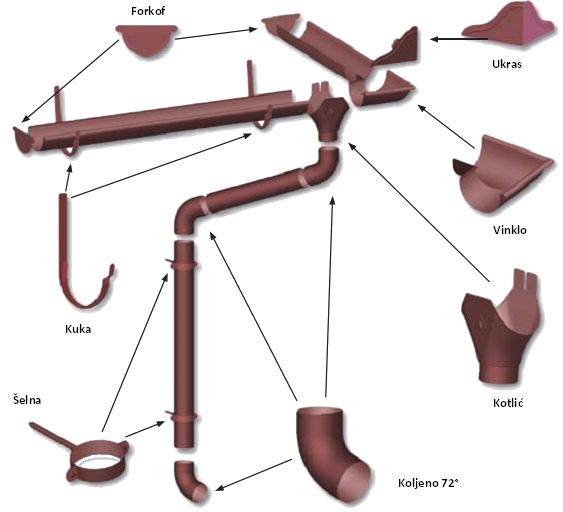 Polukružni oluci se prave u tri različite dimenzije i to Φ80, Φ100 i Φ120 mm
